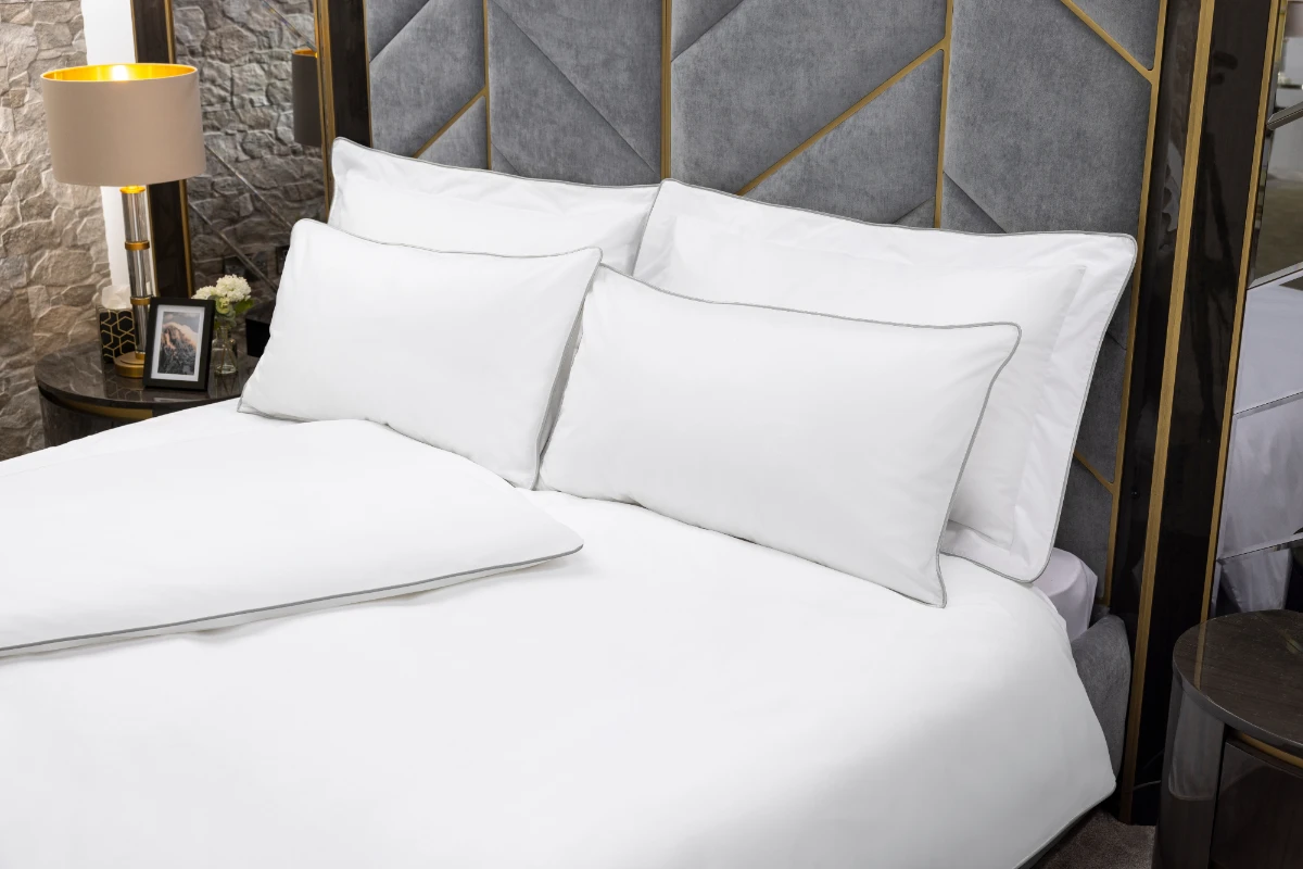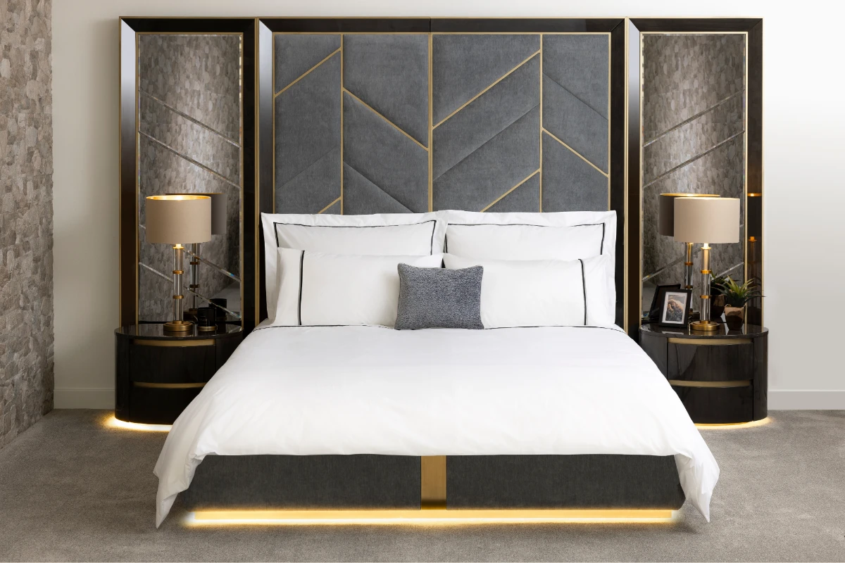 We craft bespoke bed linen from the finest 100% cotton and sateen blends. From Electric Beds to Private Yachts and Jets, we tailor each piece to your exact specifications. Handcrafted in our Lancashire factory, each piece is carefully measured, cut, and stitched to ensure exceptional quality and durability. Add a personal touch with our range of embroidery and embellishment options.
